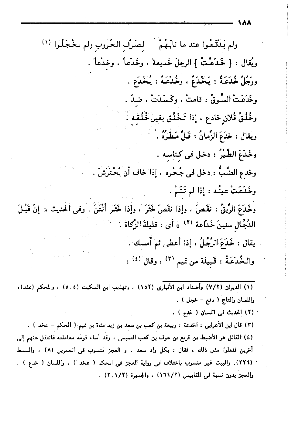 وخَدَع الضَّبُّ: دخل جُحْرِهِ، إذا خاف أن يُحْتَرَشَ.