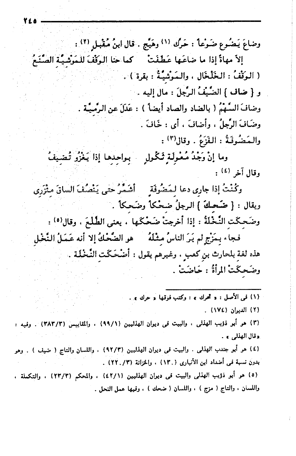 وضافَ السَّهْمُ، بالضاد والصاد أيضًا: عَدَلَ عن الرَّمِيَّة.