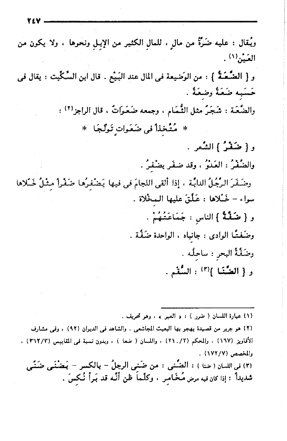 والضَّعَة: شجرٌ مثل الثُّمام، وجمعه ضعَوَاتٌ، قال الراجز: [الرجز]
