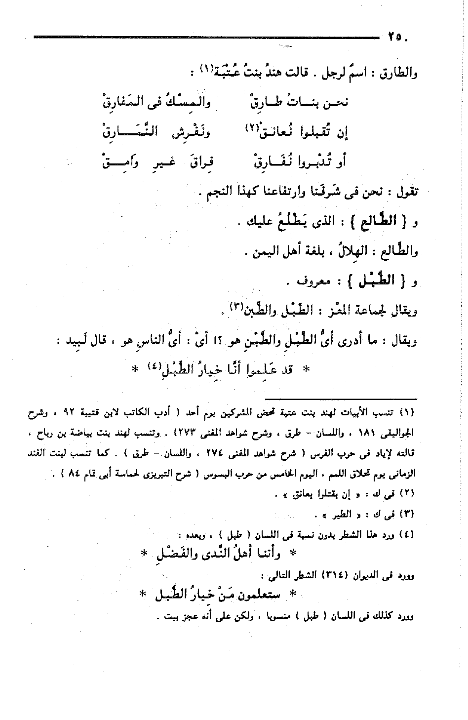 ويقال: ما أدري أيُّ الطَّبْل والطَّبْن هو؟ أيْ: أيُّ الناسِ هو، قال لَبِيد: [الرجز]