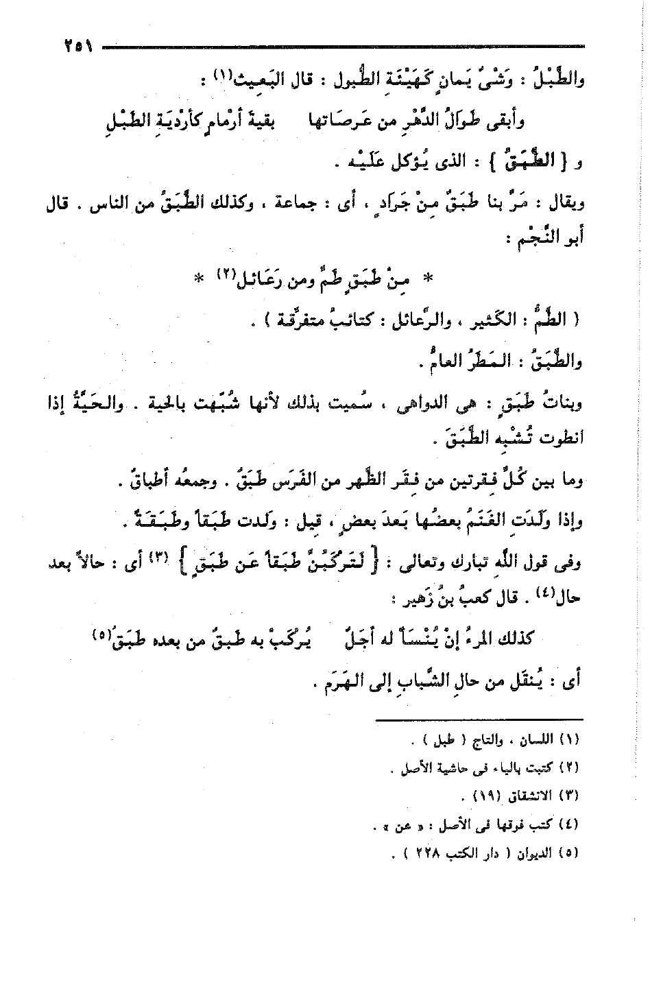 وفي قول اللهِ تبارك وتعالى: {لَتَرْكَبُنَّ طَبَقًا عن طَبَقٍ} [سورة الانشقاق/ 91] أي: حالاً بعد حال، قال كعبُ بنُ زُهَير: [البسيط]