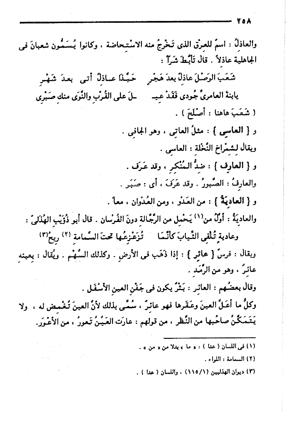 والعاذِلُ: اسمٌ للعِرْق الذي تَخْرجُ منه الاستِحاضة، وكانوا يُسَمُّون شَعْبانَ في الجاهلية: عاذِلاً؛ قال تَأبَّطَ شَرَّا: [الخفيف]