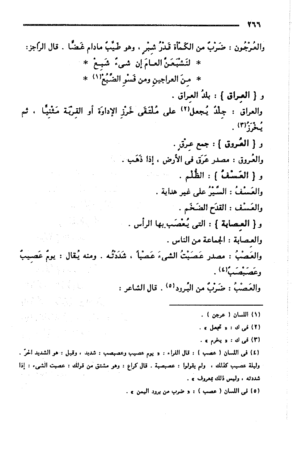 والعِراق: جِلْدٌ يُجعل على مُلْتَقَى خَرْزِ الإداوَة أو القِرْبَة مَثْنِيًّا، ثم يُخْرَزُ.