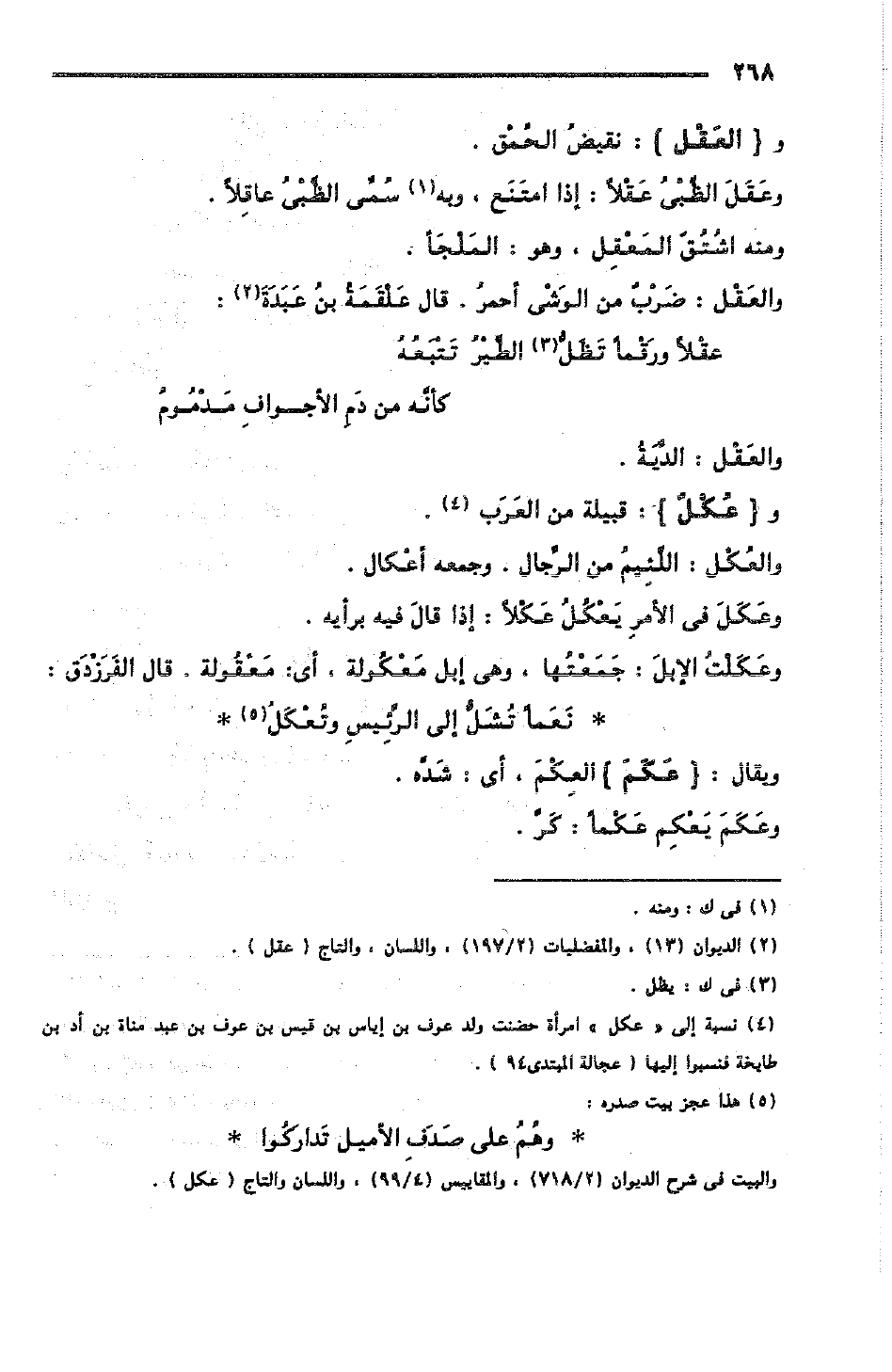 وعَكَلْت الإبلَ: جَمَعْتُها، وهي إبل مَعْكُولة، أي: مَعْقُولة؛ قال الفَرَزْدَق: [الكامل]