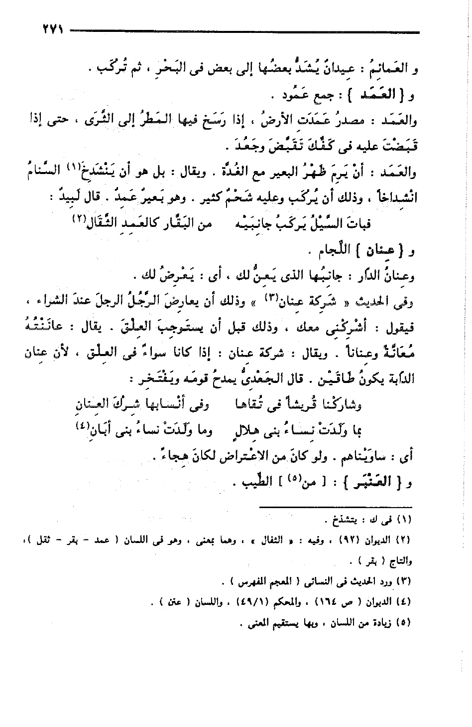 والعَمَد: أنْ يَرِمَ ظَهْرُ البعير مع الغُدَّة، ويقال: بل هو أن يَنْشَدِخَ السَّنامُ انْشِداخًا، وذلك أن يُرْكَب وعليه شَحْمٌ كثير، وهو بَعيرٌ عَمِدٌ؛ قال لَبِيد: [الوافر]
