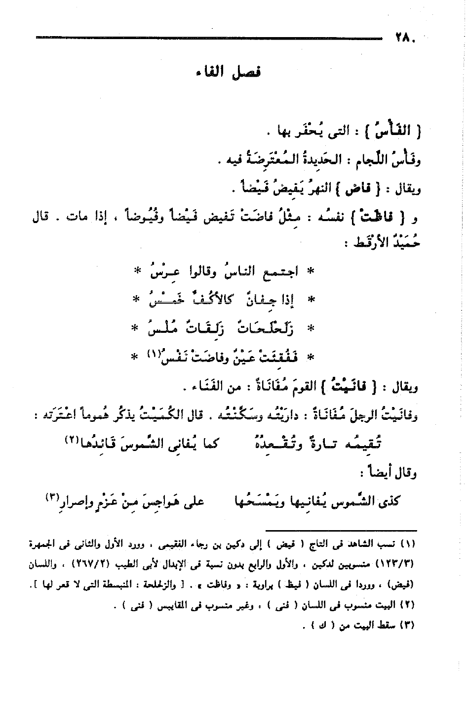 وفانَيْت الرجلَ مفَانَاةً: دارَيْتُه وسَكَّنْتُه، قال الكُمَيْتُ يذكرُ هُمومًا اعْتَرَته: [المنسرح]