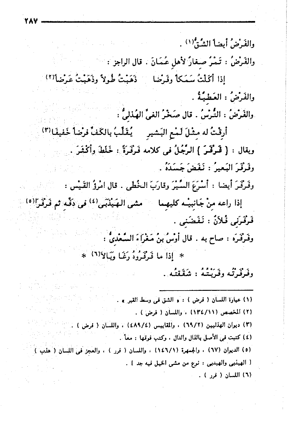 والفَرْضُ: تَمْرٌ صِغَارٌ لأهلِ عُمَانَ، قال الراجز: [الرجز]