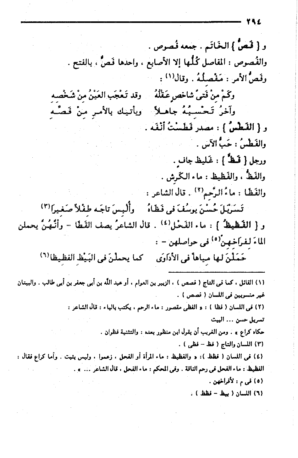والفَظِيظُ: ماء الفَحْل، قال الشاعرُ يصف القَطَا، وأنَّهُنَّ يَحْمِلْنَ الماء لِفِرَاخهِنَّ في حواصلهنَّ: [الوافر]