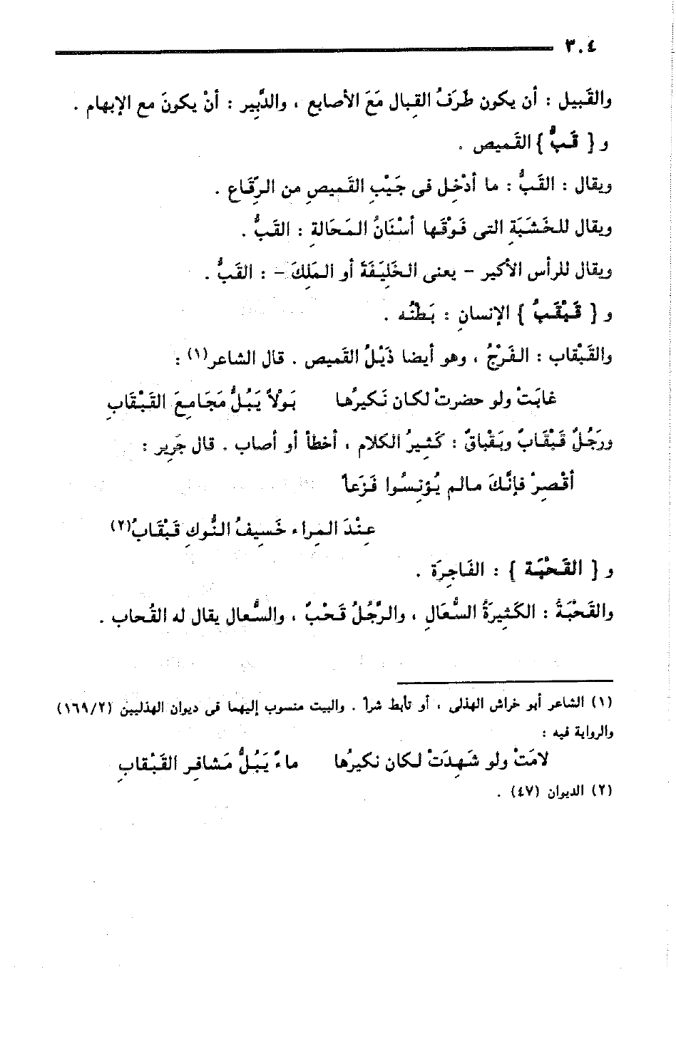 أقْصِرْ فإنَّكَ ما لم يُؤْنِسُوا فَزَعًا ... عِنْدَ المِراء خَسِيفُ النُّوكِ قَبْقَابُ