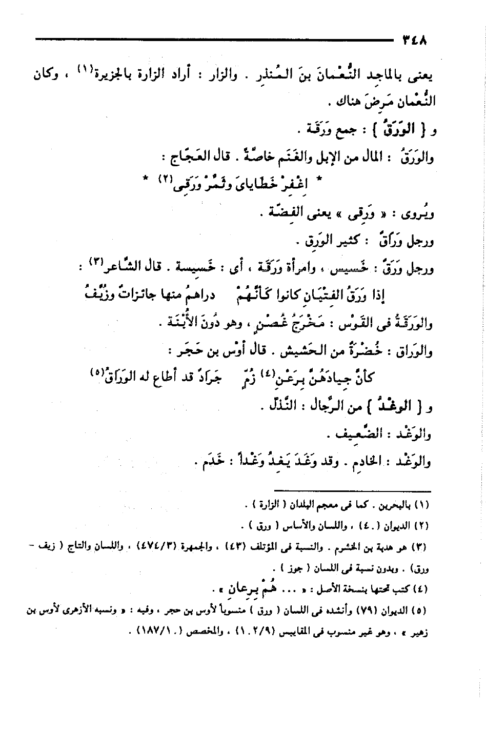 والوَرَق: المال من الإبل والغَنَم خاصَّةً، قال العَجَّاج: [الرجز]
