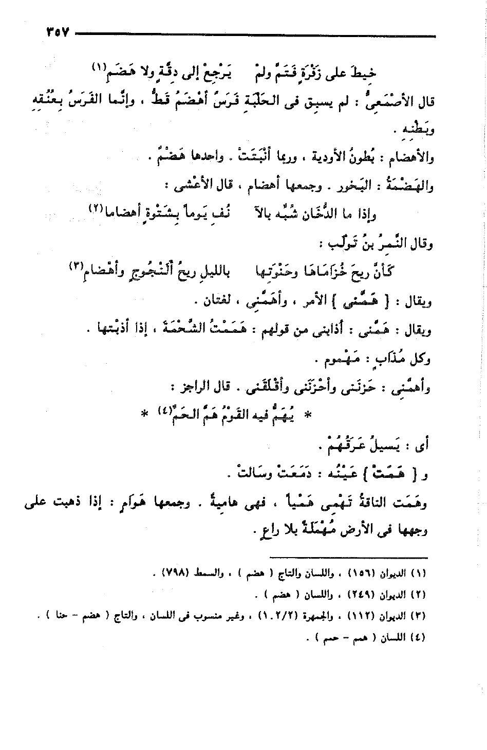 والأَهْضَامُ: بُطونُ الأودية، وربما أنْبَتَتْ، واحِدُها هَضْم.