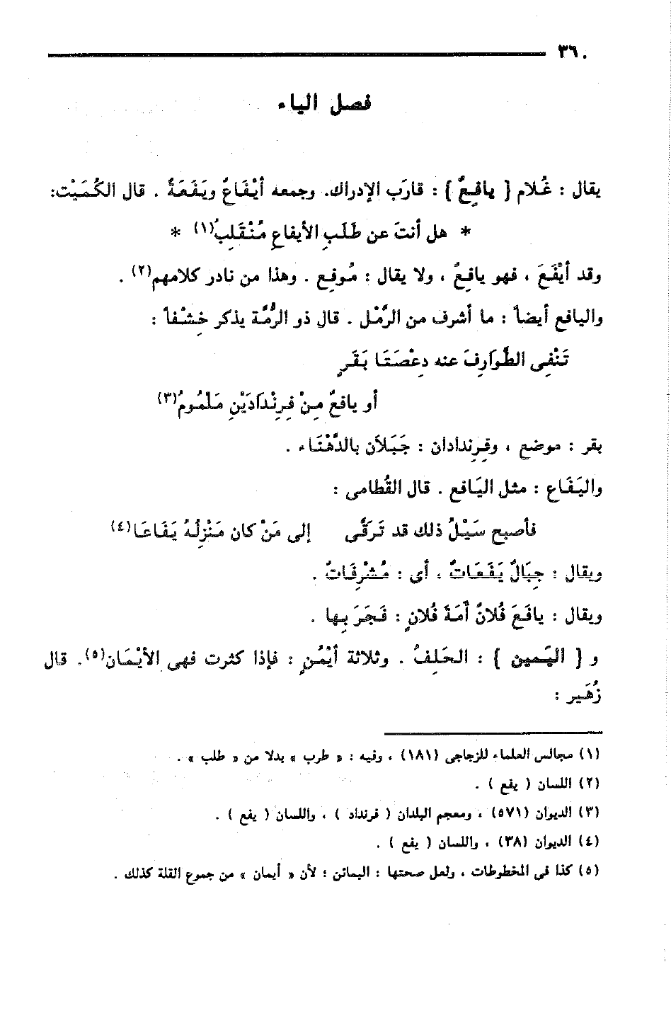 يقال: غُلام يافعٌ: قارَب الإدراك، وجمعه أيْفَاعٌ ويَفَعَةٌ، قال الكُمَيْت: [البسيط]