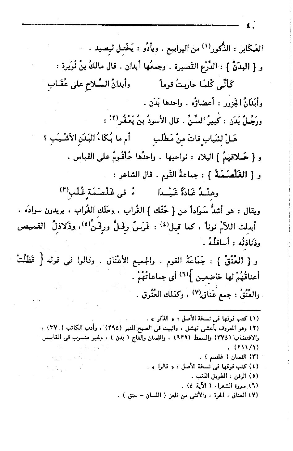 وأبْدَانُ الجَزور: أعضاؤُه، واحدها بَدَن.