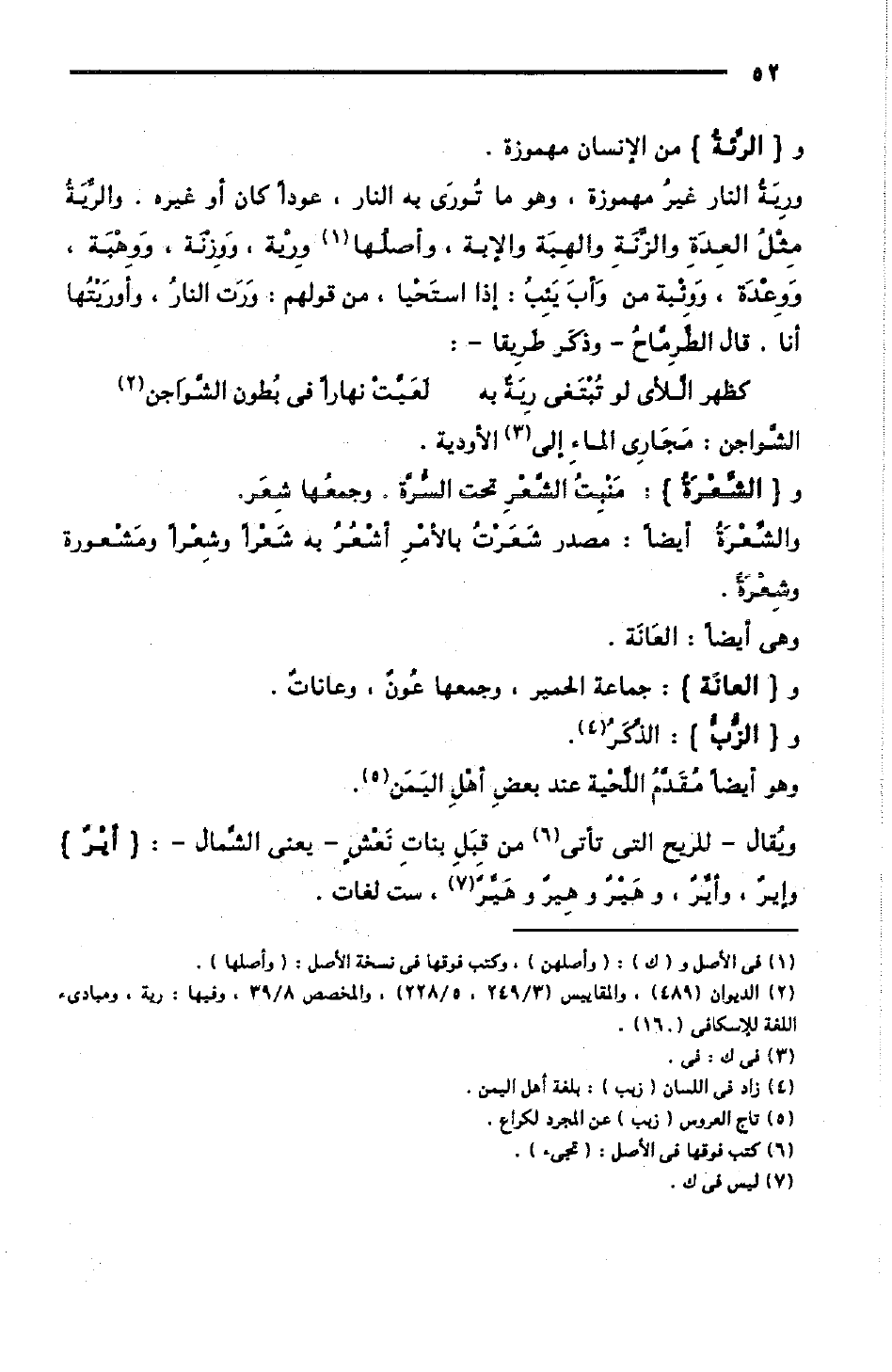 ورِيَة النار غيرُ مهموزة، وهو ما تُورَى به، عودًا كان أو غيره. والرِّيَةُ مِثْلُ العِدَةِ والزِّنَةِ والهِبَة والإِبَةِ، وأصلُها وِرْية، وَوِزْنَة، وَوِهْبَة، وَوِعْدَة، ووِئْبَة من وَأبَ يَئِبُ: إذا استَحْيا - من قولهم: وَرَت النارُ، وأورَيْتُها أنا؛ قال الطِّرِمّاحُ - وذَكَر طَرِيقا -: [الطويل]