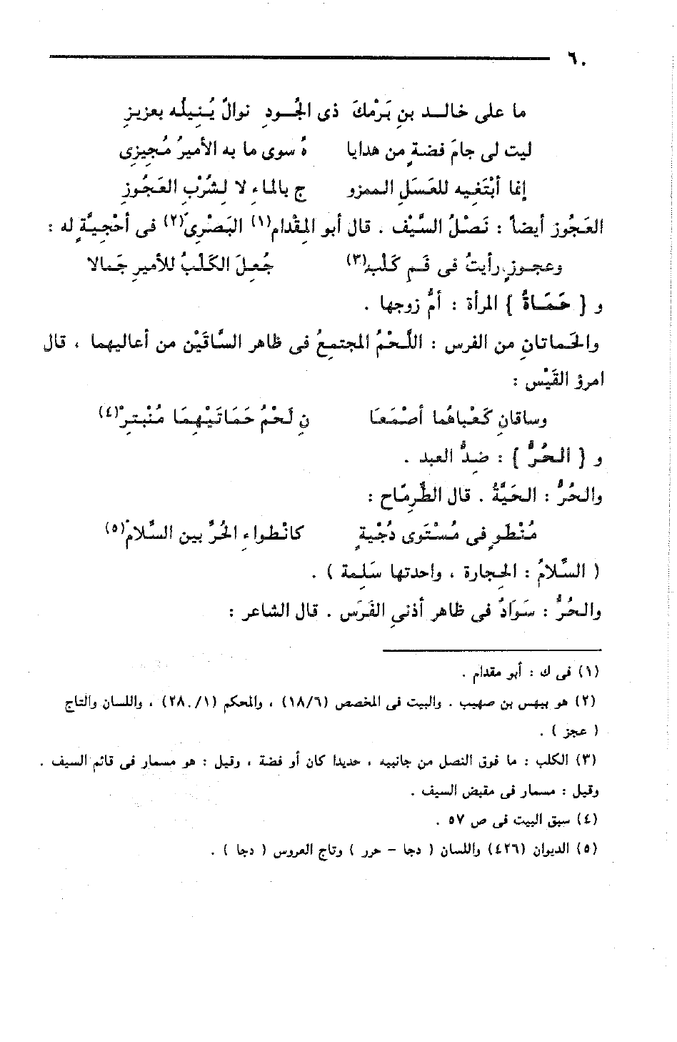 والحَمَاتان من الفرس: اللَّحْمُ المجتمِعُ في ظاهر السَّاقَيْن من أعاليهما، قال امرؤ القَيْس: [المتقارب]