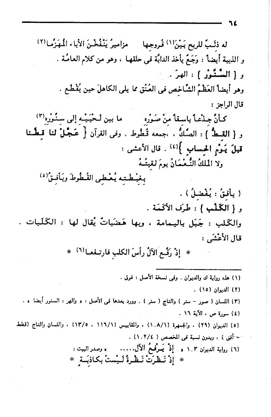 كأنَّ جِذْعًا باسقًا مِنْ صَوْرِهِ ... ما بين لَحْيَيْهِ إلى سِنَّوْرِهِ