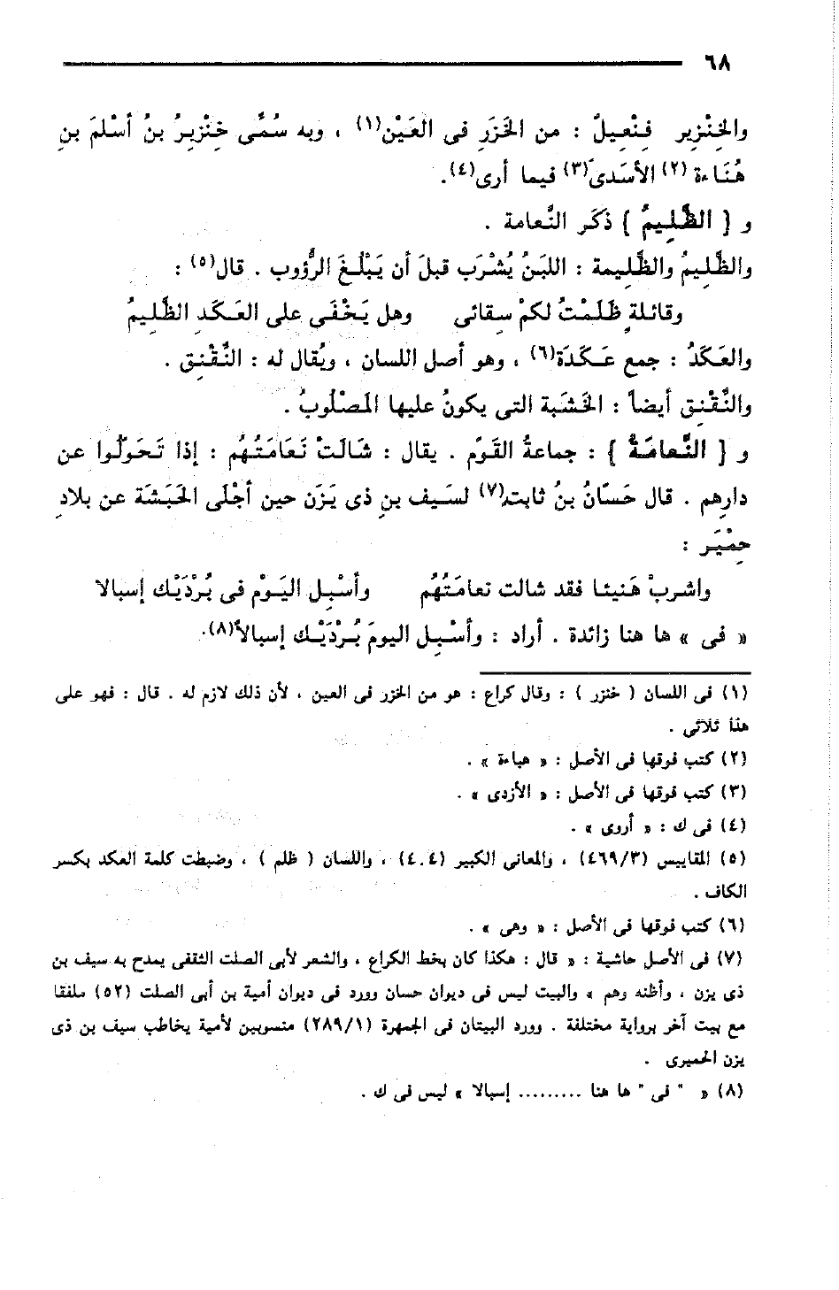 والخِنْزِير: فِنْعِيلٌ من الخَزَرِ في العَيْن، وبه سُمِّي خِنْزيرُ بنُ أسْلمَ بنِ هُناءَة الأَسْدِيُّ في ما أَرَى.