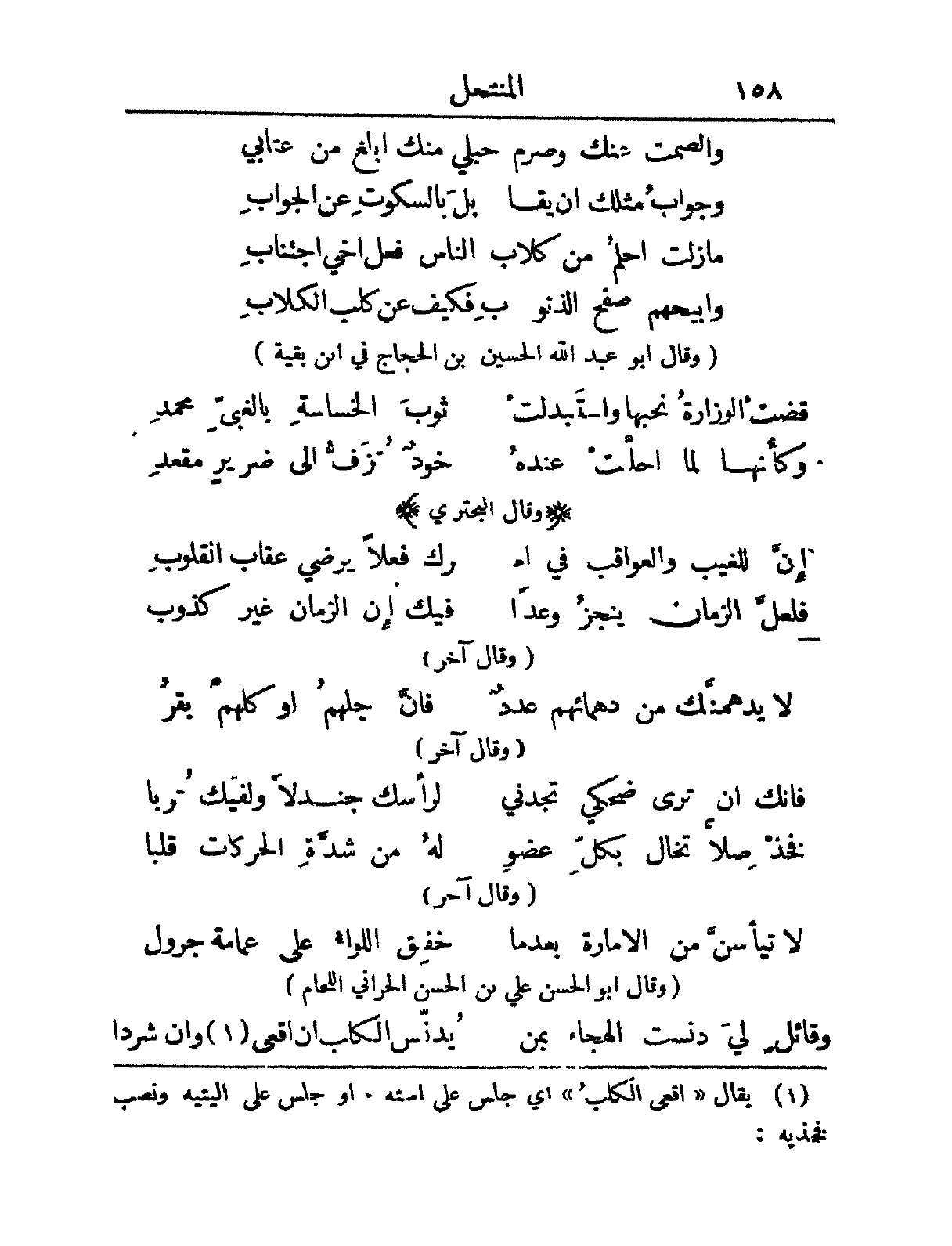 وجوابُ مثلك أن يقا ... بلَ بالسكوتِ عنِ الجوابِ