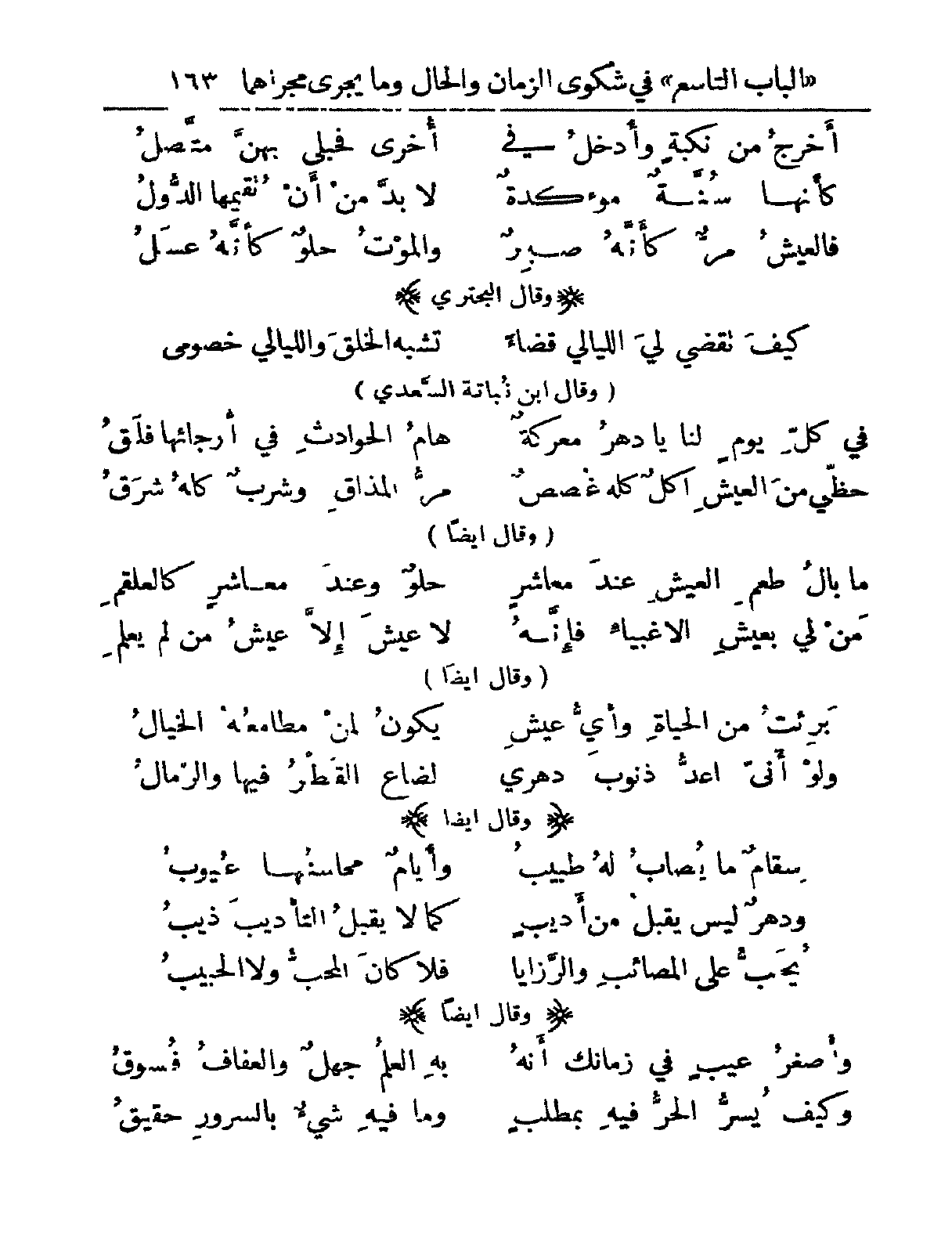 سقامٌ ما يُصابُ له طبيبُ ... وأيامٌ محاسنها عيوبُ