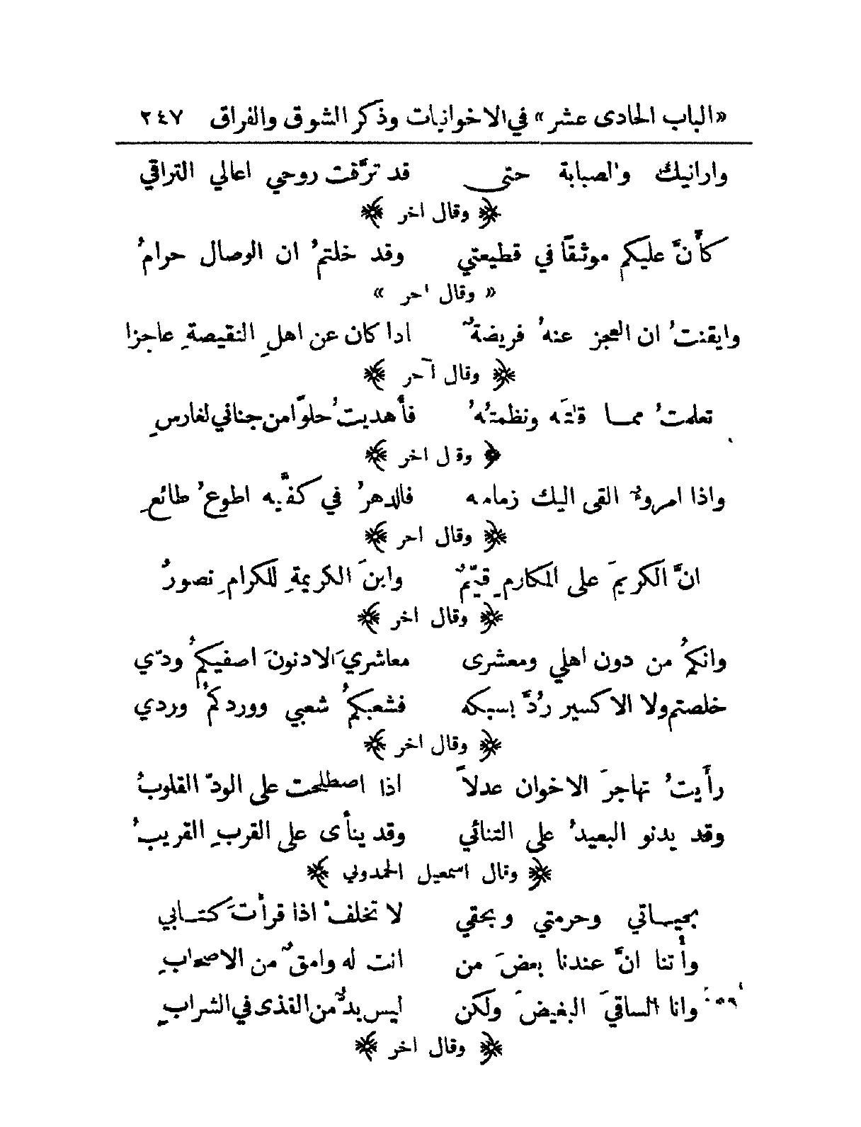 وأرانيك والصبابة حتَّى ... قد ترقَّت روحي أعالي التراقي