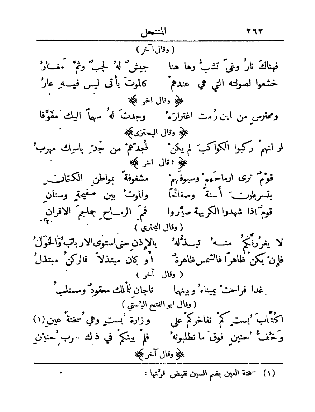 قومٌ ترى أرماحَهمْ وسيوفَهمْ ... مشغوفةً بمواطنِ الكتمانِ