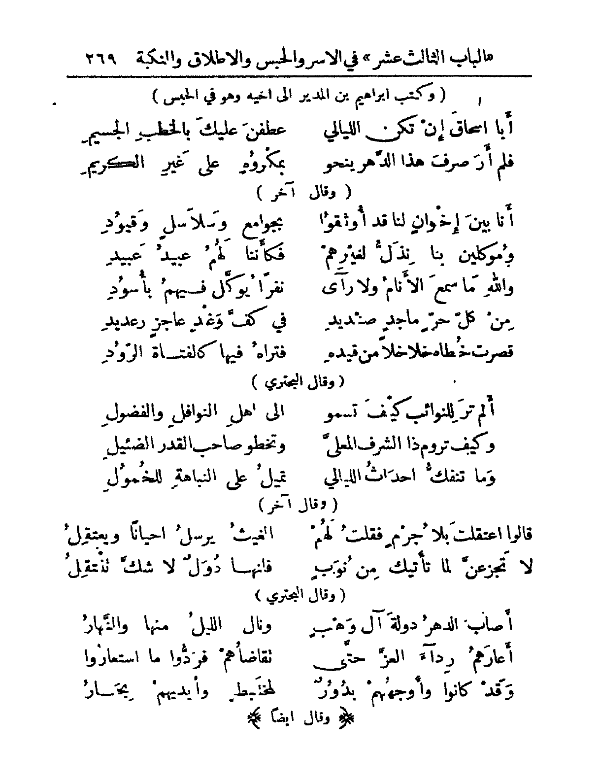 وكتب إبراهيم بن المدير إلى أخيه وهو في الحبس:
