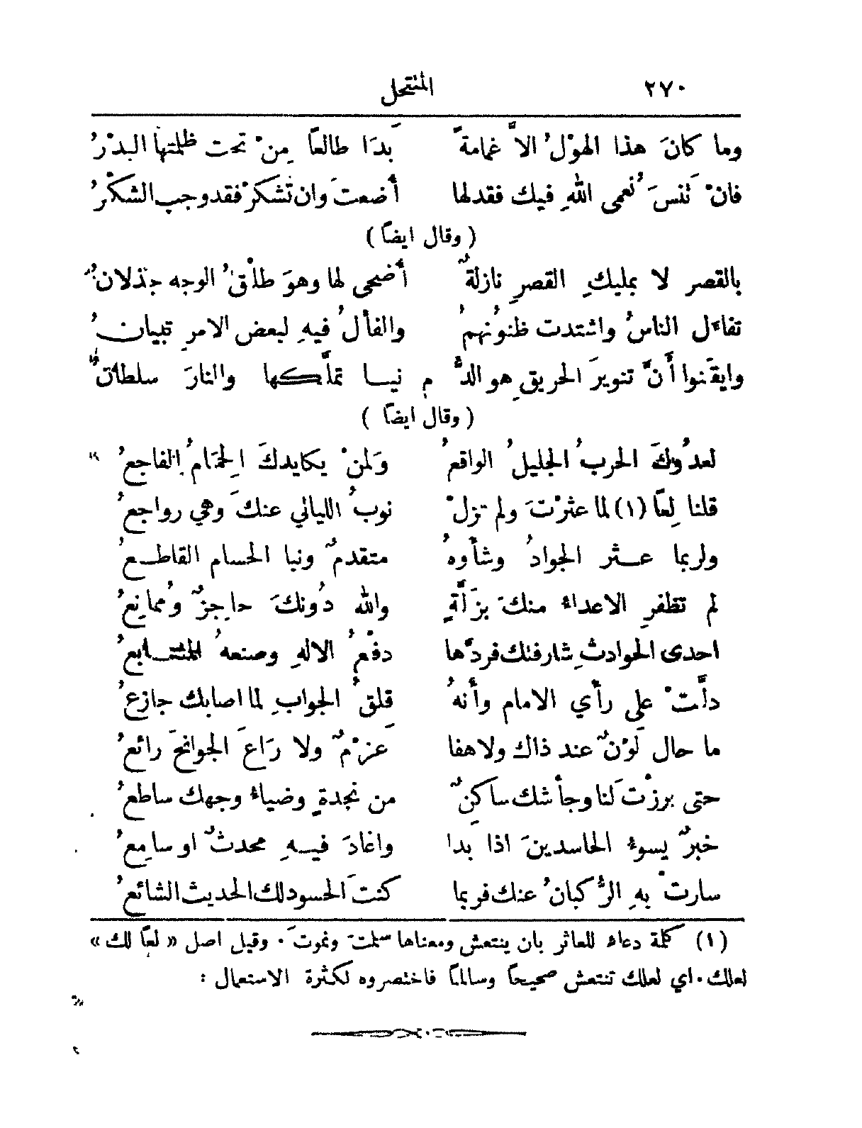 لعدوكَ الحربُ الجليلُ الواقعُ ... ولمنْ يكايدكَ الحِمامُ الفاجعُ