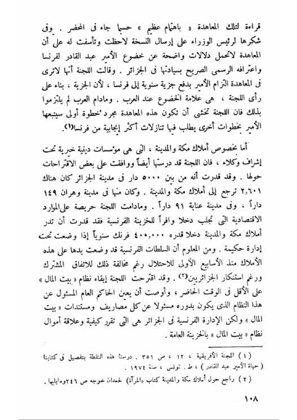 (¬1) اللجنة الأفريقية، 12، ص 351. درسنا هذه النقطة بتفصيل في كتابنا (حياة الأميرعبد القادر)، ط، تونس، سنة 1974.