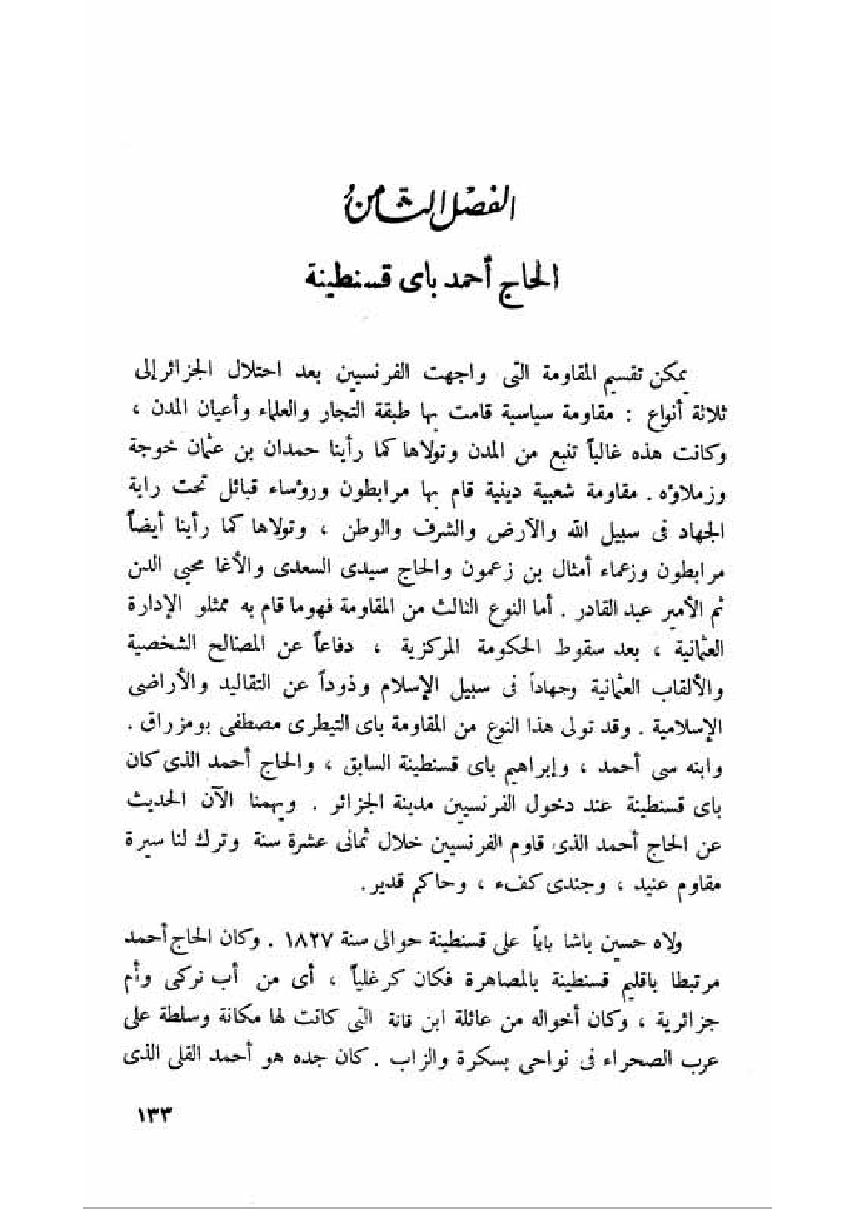 وابنه سي أحمد، وإبراهيم باي قسنطينة السابق، والحاج أحمد الذي كان باي قسنطينة عند دخول الفرنسيين مدينة الجزائر. ويهمنا الآن الحديث عن الحاج أحمد الذي قاوم الفرنسيين خلال ثماني عشرة سنة وترك لنا سيرة مقاوم عنيد، وجندي كفء، وحاكم قدير.