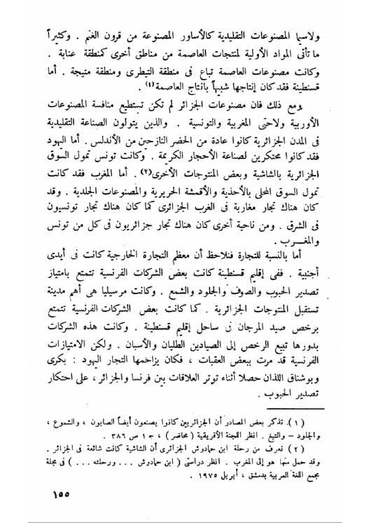 (¬1) تذكر بعض المصادر أن الجزائريين كانوا يصنعون أيضا الصابون، والشموع، والجلود - والتبغ. انظر اللجنة الأفريقية (محاضر)، ج 1 ص 386.