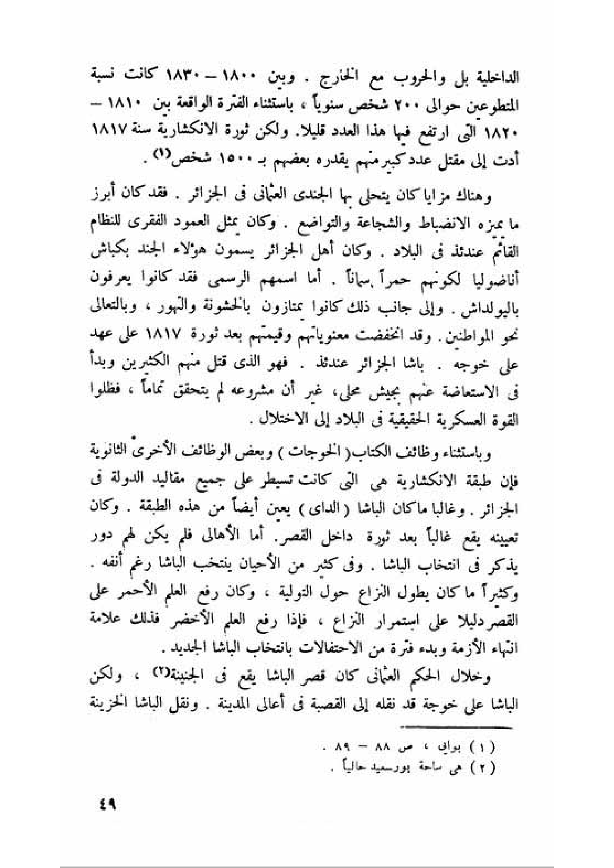 الداخلية بل والحروب مع الخارج. وبين 1800 - 1830 كانت نسبة المتطوعين حوالي 200 شخص سنويا، باستثناء الفترة الواقعة بين 1810 - 1820 التي ارتفع فيها هذا العدد قليلا. ولكن ثورة الانكشارية سنة 1817 أدت إلى مقتل عدد كبير منهم يقدره بعضهم ب 1500 شخص (¬1).