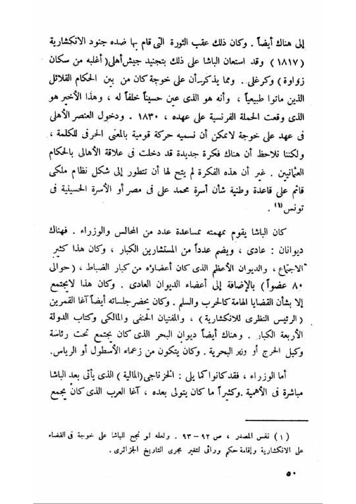 (¬1) نفس المصدر، ص 92 - 92. ولعله لو نجح الباشا علي خوجه في القضاء على الانكشارية وإقامة حكم وراثي لتغير مجرى التاريخ الجزائري.