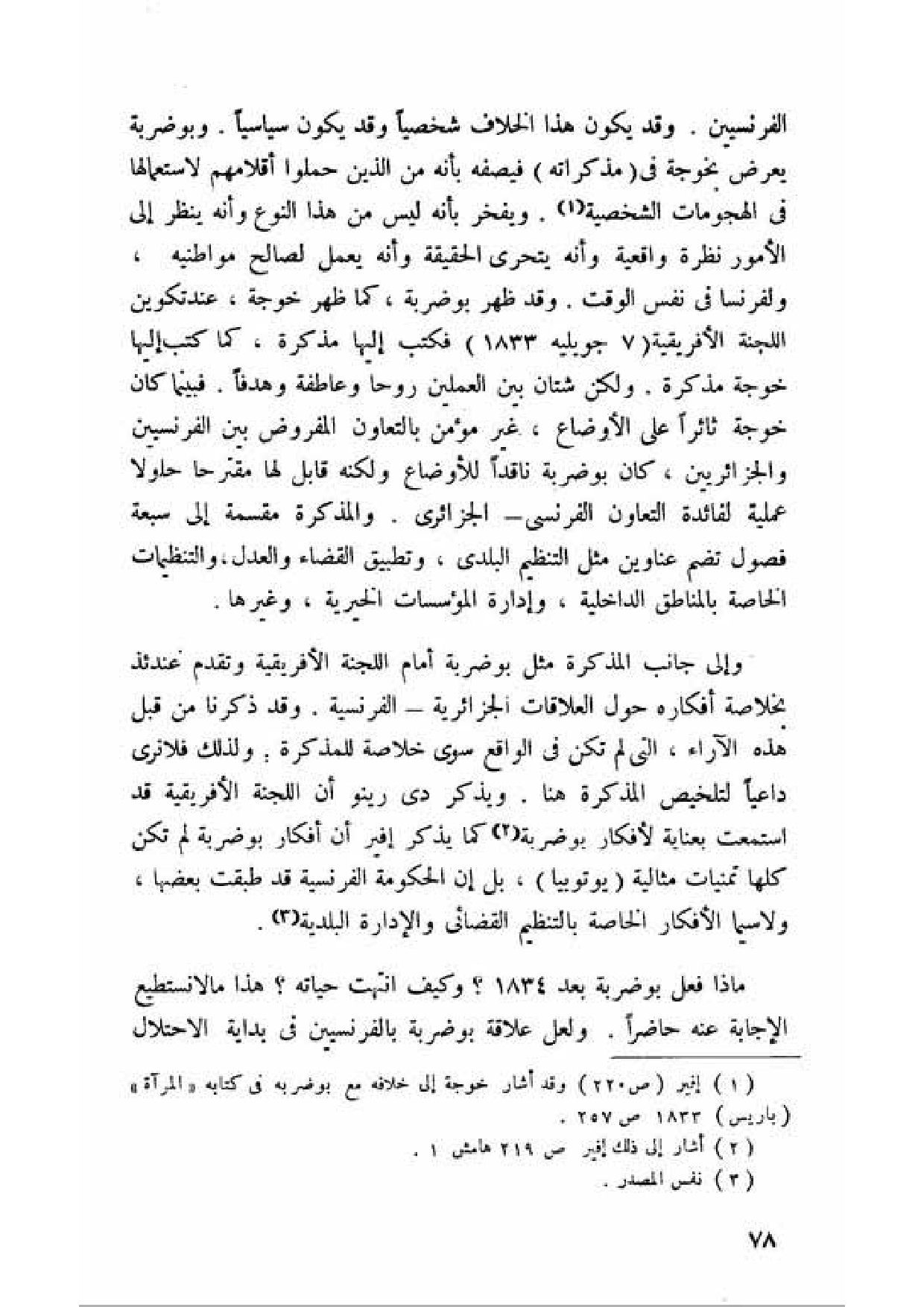 (¬1) إفير (ص 220) وقد أشار خوجة إلى خلافه مع بوضربه في كتابه (المرآة) (باريس) 1823 ص 257.