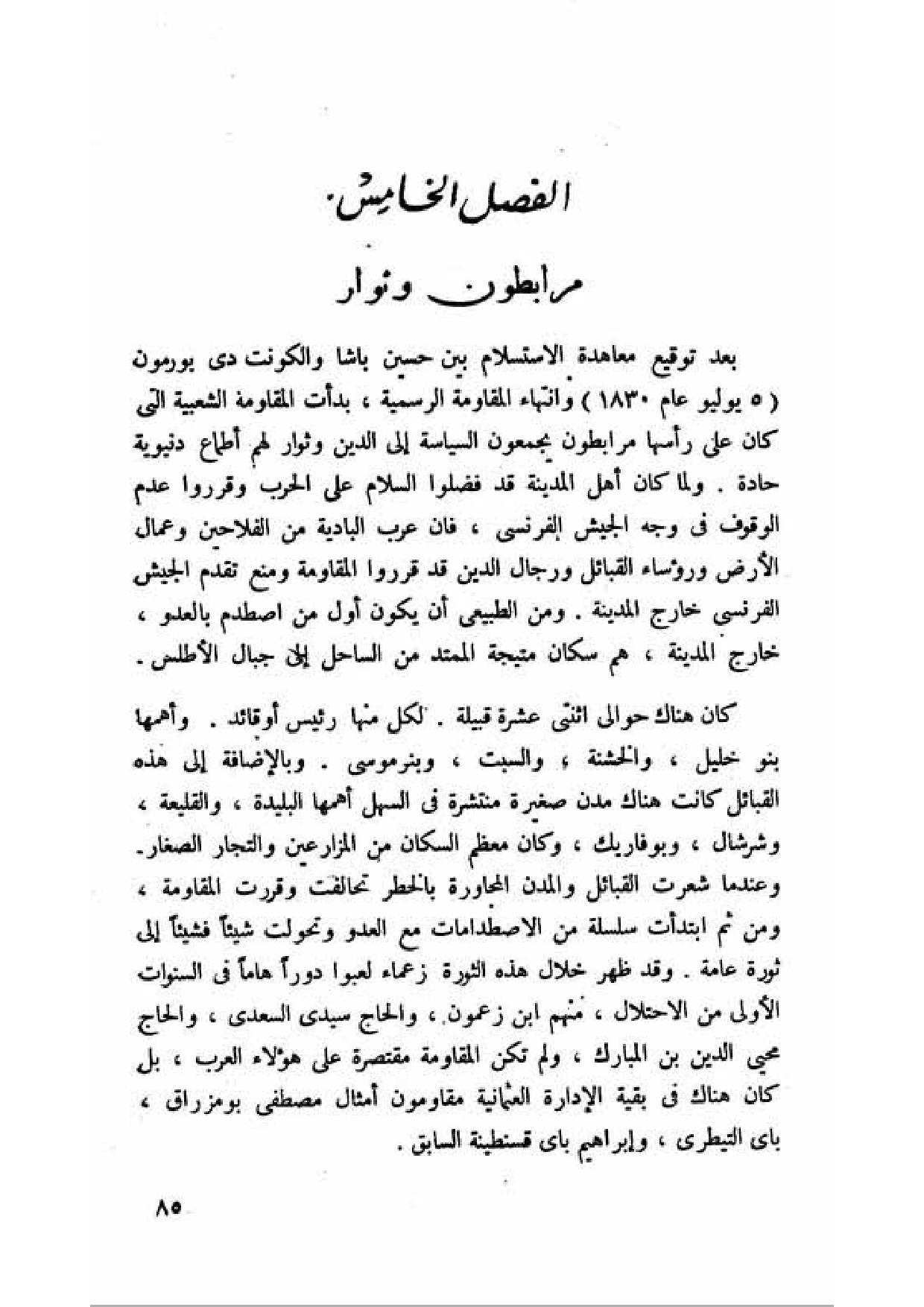 بعد توقيع معاهدة الاستسلام بين حسين باشا والكونت دي بورمون (5 يوليو عام 1830) وانتهاء المقاومة الرسمية، بدأت المقاومة الشعبية التي كان على رأسها مرابطون يجمعون الساسة إلى الدين وثوار لهم أطماع دنيوية حادة. ولما كان أهل المدينة قد فظلوا السلام على الحرب وقرروا عدم الوقوف في وجه الجيش الفرنسي، فان عرب البادية من الفلاحين وعمال الأرض ورؤساء القبائل ورجال الدين قد قرروا المقاومة ومنع تقدم الجيش الفرنسي خارج المدينة. ومن الطبيعي أن يكون أول من اصطدم بالعدو، خارج المدينة، هم سكان متيجة الممتد من الساحل إلى جبال الأطلس.