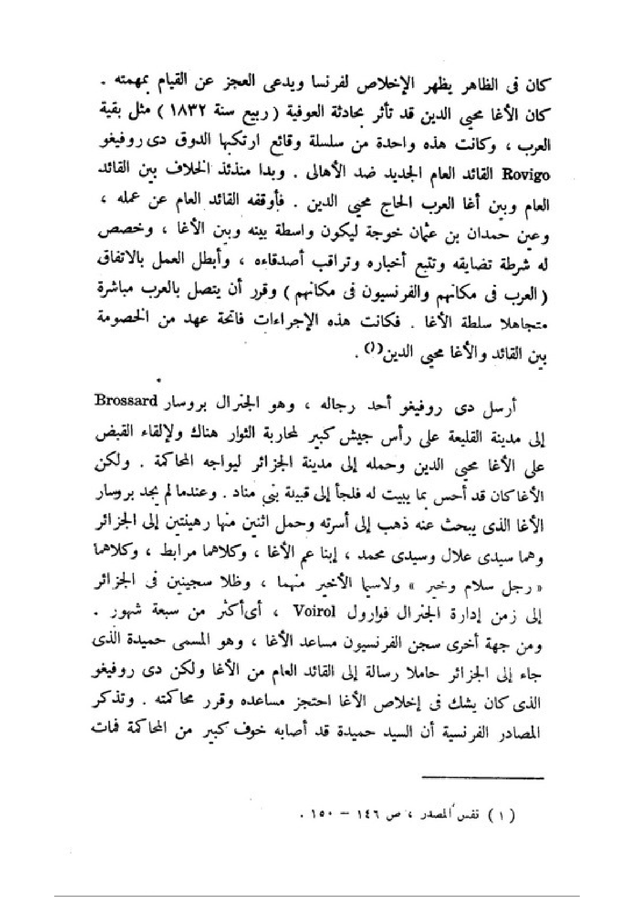 كان في الظاهر يظهر الإخلاص لفرنسا ويدعى العجز عن القيام بمهمته، كان الأغا محيي الدين قد تأثر بحادثة العوفية (ربيع سنة 1832) مثل بقية العرب، وكانت هذه واحدة من سلسلة وقائع ارتكبها الدوق دي روفيغو Rovigo القائد العام الجديد ضد الأهالي. وبدا منذئذ الخلاف بين القائد العام وبين أغا العرب الحاج محيي الدين. فأوقفه القائد العام عن عمله، وعين حمدان بن عثمان خوجة ليكون واسطة بينه وبين الآغا، وخصص له شرطة تضايقه وتتبع أخباره وتراقب أصدقاءه، وأبطل العمل بالاتفاق (العرب في مكانهم والفرنسيون في مكانهم) وقرر أن يتصل بالعرب مباشرة متجاهلا سلطة الآغا. فكانت هذه الإجراءات فاتحة عهد من الخصومة بين القائد والآغا محيي الدين (¬1).