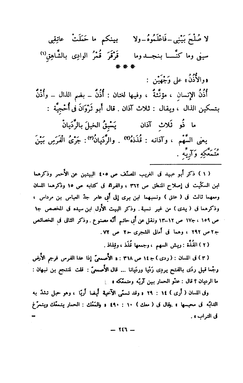يعني السَّهْم، وآذانه: قُذَذُه. والرَّدَيانُ: جَرْىُ الْفَرسِ بَيْنَ مَتَمَعَّكِهِ وآرِيِّهِ.