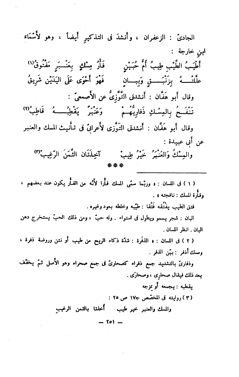وقال أبو هفان: أنشدني التوزي لأعرابي في تأنيث المسك والعنبر عن أبي عبيدة: