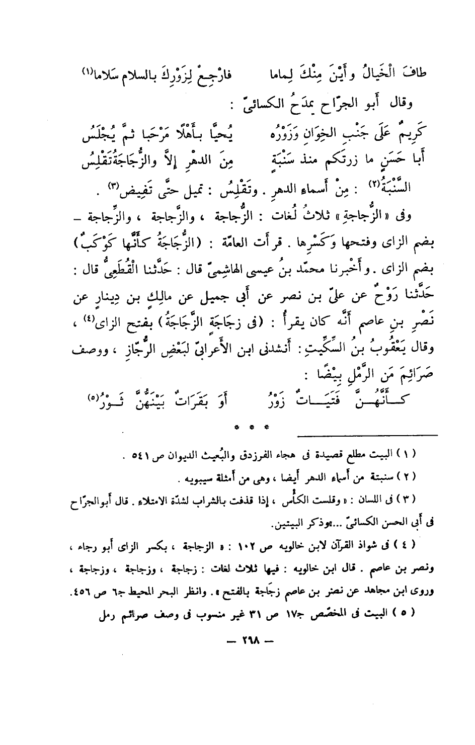 وفي "الزُّجاجةِ" ثلاث لغات: الزجاجة، والزجاجة، والزجاجة- بضم الزاي وفتحها وكسرها. قرأت العامة: (الزجاجةُ كأنها كوكبٌ) بضم الزاي. وأخبرنا محمد بن عيسى الهاشمي قال: حدثنا القطعي قال: حدثنا روح عن علي بن نصر عن أبي جميل عن مالك بن دينار عن نصر بن عاصم أنه كان يقرأ: (في زجاجةٍ الزجاجةُ) بفتح الزاي، وقال يعقوب بن السكيت: أنشدني ابن الأعرابي لبعض الرجازِ، ووصف صرائم من الرمل بيضا: