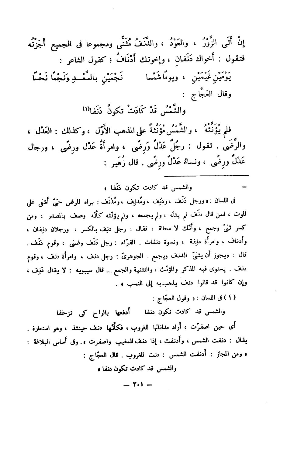 فلم يؤنثه، والشمس مؤنثةً على المذهب الأول، وكذلك: العدل، والرضى. تقول: رجلٌ عدلٌ ورضي، وامرأة عدل ورضى، ورجال عدلٌ ورضى، ونساء عدل ورضى. قال زهير: