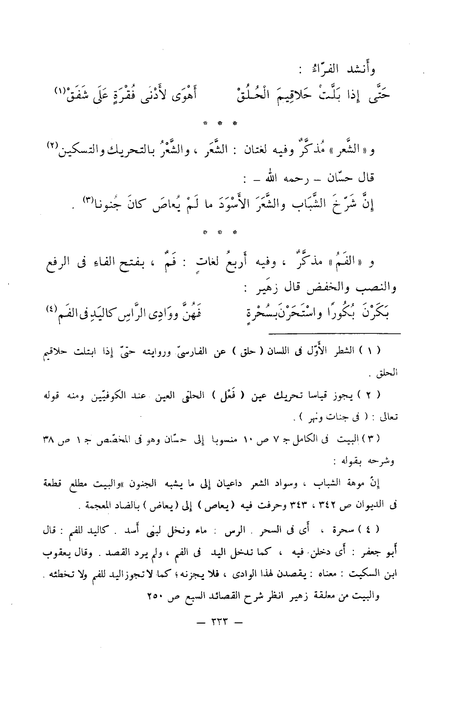 و"الشعر" مُذكرٌ وفيه لغتان: الشعر، والشعر بالتحريك والتسكين قال حسان - رحمه الله-: