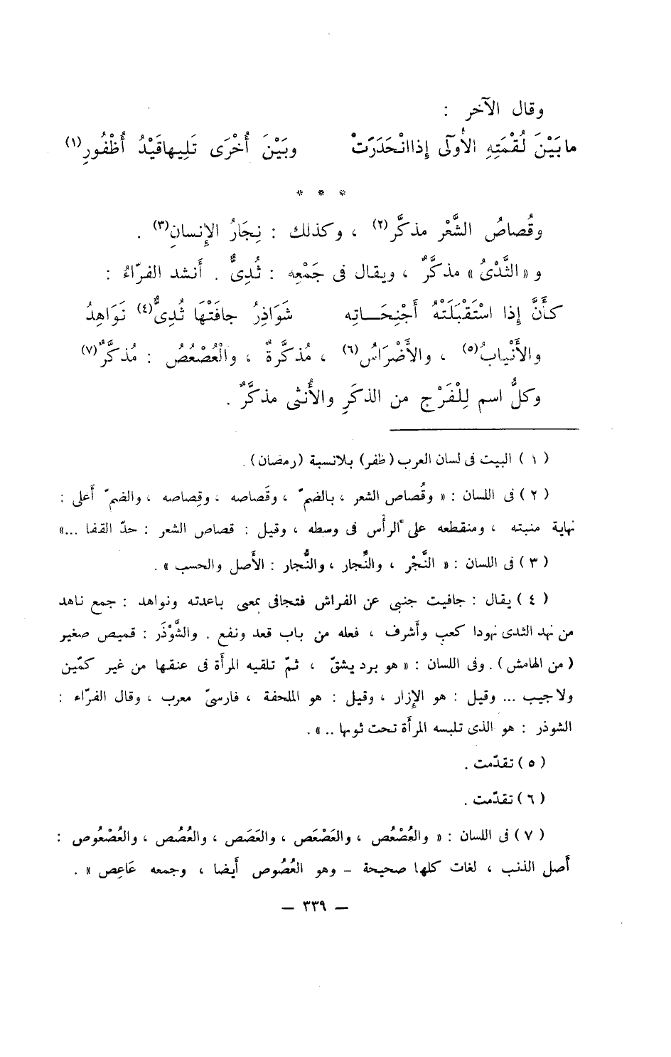 وقصاصُ الشعر مذكر، وكذلك: نِجَارُ الإنسان.