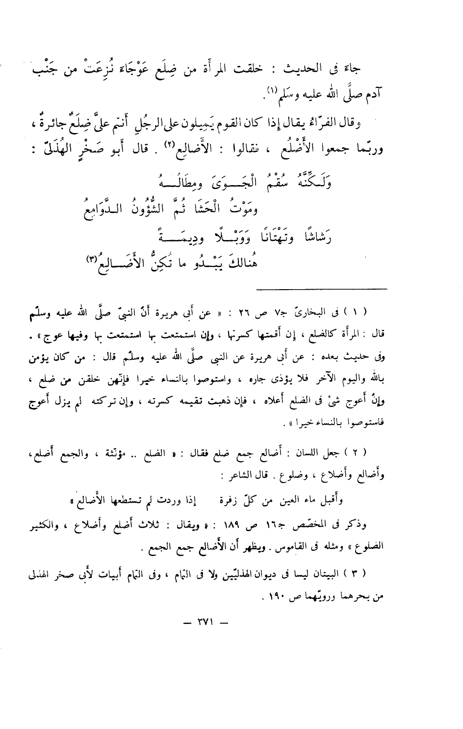 وقال الفراءُ يقال إذا كان القوم يميلون على الرجُلِ أنتم على ضِلَعٌ جائرةٌ، وربما جمعوا الأضلع، فقالوا: الأضالِع. قال أبو صخرٍ الهُذلي: