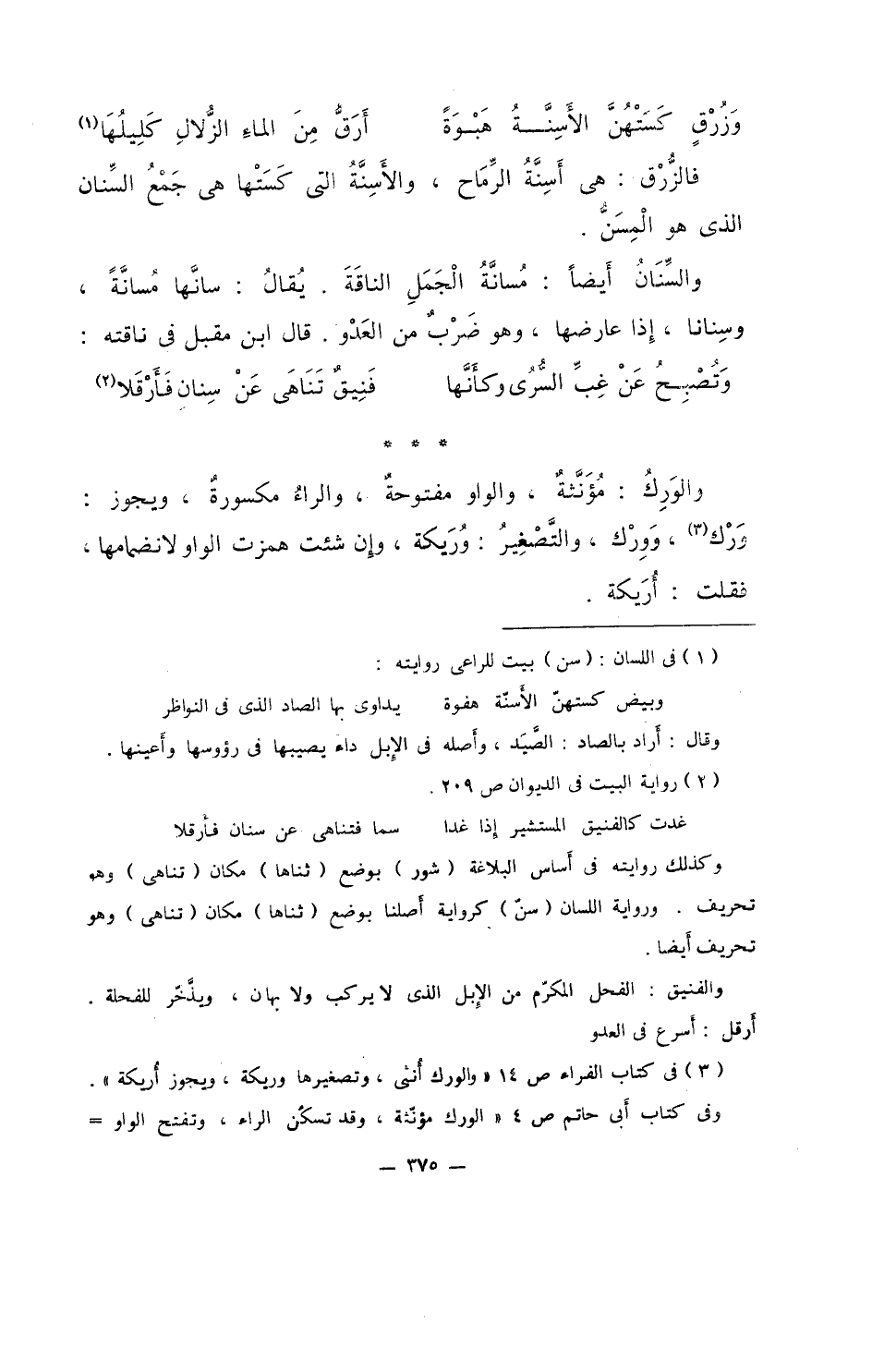 والسنان أيضاً: مُسانَّةُ الجملِ الناقة. يقال: سانها مسانةً، وسنانا، إذا عارضها، وهو ضربٌ من العدو. قال ابن مقبل في ناقته: