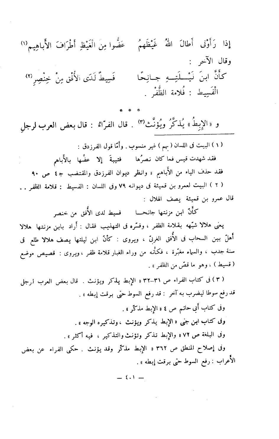 و"الإبطُ" يُذكرُ ويؤنث. قال الفراء: قال بعض العرب لرجلِ