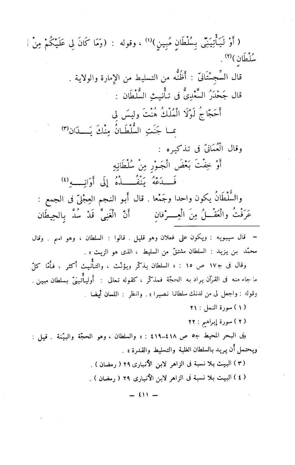 (أو ليأتيني بسلطانٍ مبينٍ)، وقوله: (وما كان لي عليكم من سلطانٍ).