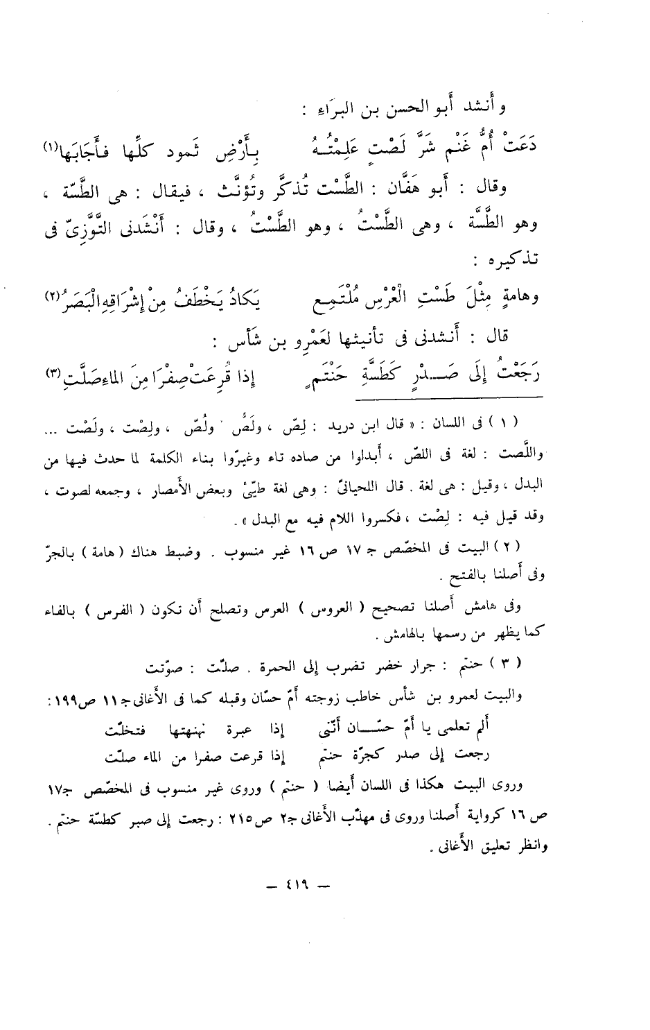 وقال: أبو هفان: الطسْت تُذكر وتؤنث، فيقال: هي الطسة، وهو الطسة، وهي الطستُ، وهو الطسْتُ، وقال: أنشدني التوزِي في تذكيره: