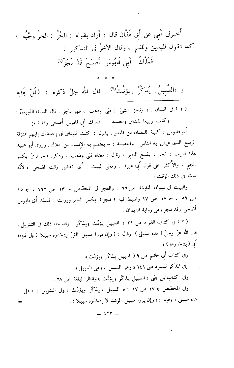 و"السَّبِيلُ" يُذكَّرُ ويؤنث. قال لله جل ذكره: (قُلْ هذه
