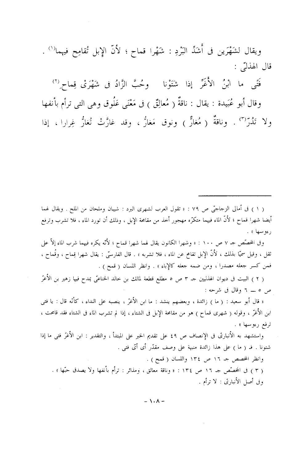 ويقال لشهرين في أشدِّ البرد: شهراً قماح؛ لأن الإبل تُقامح فيهما. قال الهذلي: