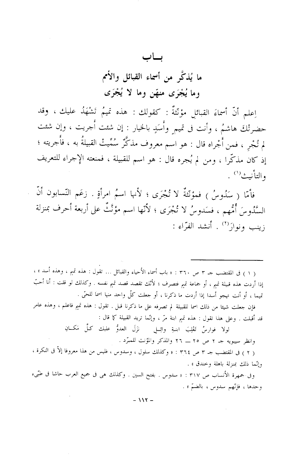 اعلم أن أسماء القبائل مؤنثةٌ: كقولك: هذه تميمُ تشهدُ عليك، وقد حضرتكَ هاشمُ، وأنت في تميمٍ وأسدٍ بالخيار: إن شئت أجريت، وإن شئت لم تُجرِ، فمن أجراه قال: هو اسم معروف مذكَّرٌ سُميت القبيلةُ به، فأجريته؛ إذ كان مذكراً، ومن لم يُجره قال: هو اسم للقبيلة، فمنعته الإجراء للتعريف والتأنيث.