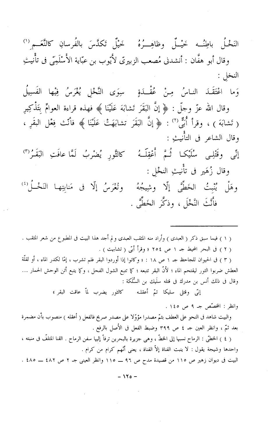 وقال أبو هفان: أنشدني مُصعب الزبيري لأيوب بن عباية الأسلمي في تأنيثِ النخل: